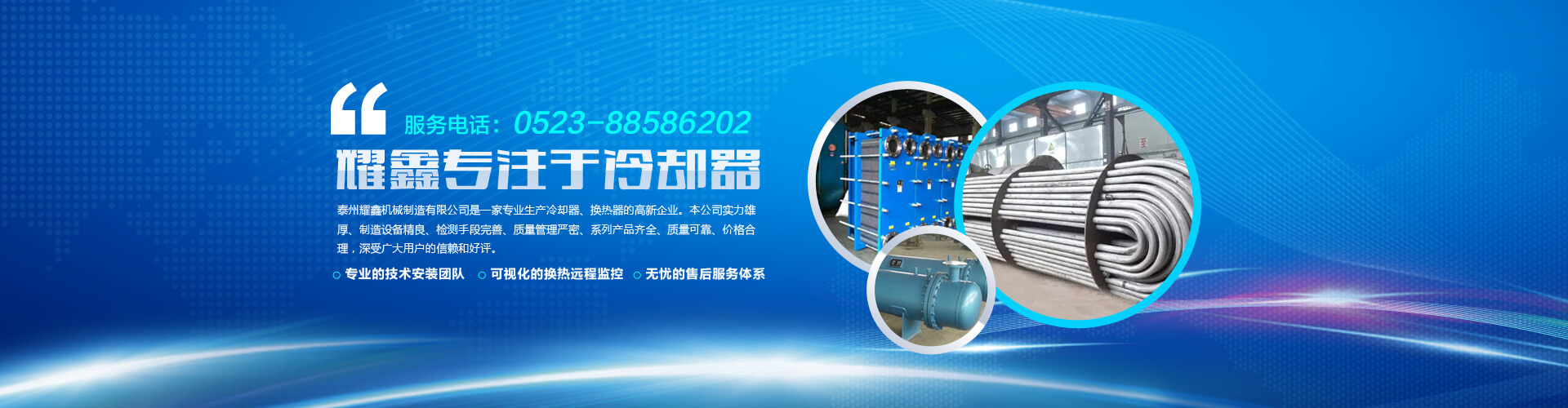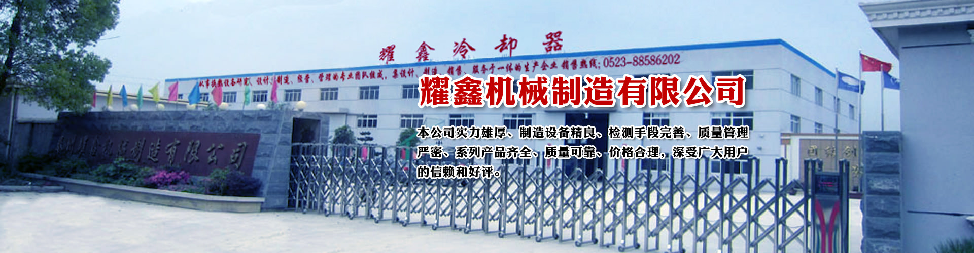 免費咨詢方案 +泰州耀鑫機械制造有限公司座落于風景如畫的江蘇魚米之鄉(xiāng)--全國文明城鎮(zhèn)婁莊鎮(zhèn),是一家專業(yè)生產風冷卻器、列管式冷卻器、板式冷卻器的企業(yè)。本公司實力雄厚、制造設備精良、檢測手段完善、質量管理嚴密、系列產品齊全、質量可靠、價格合理,深受廣大用戶的信賴和好評。